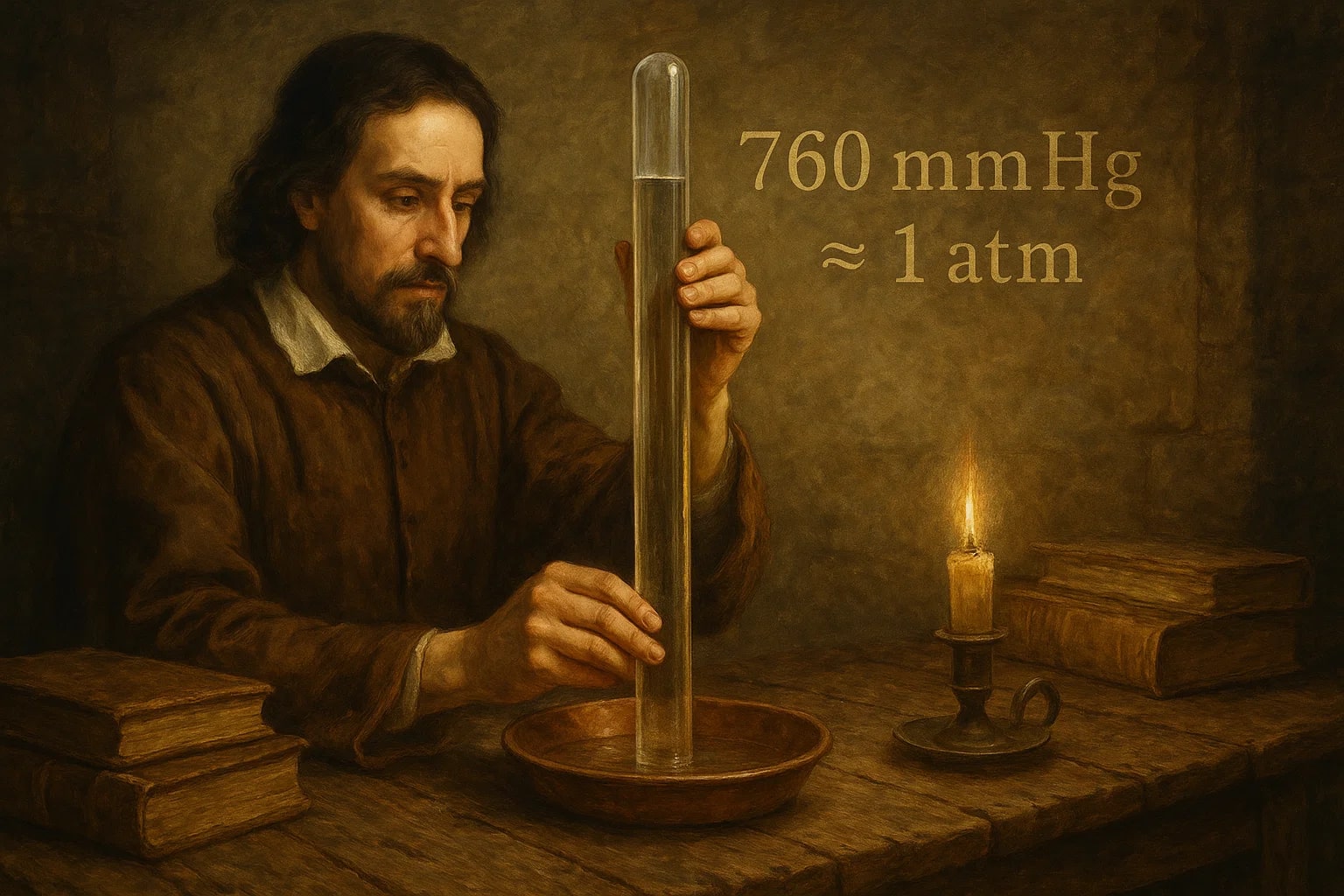 The unit torr is named after Evangelista Torricelli, who made history in 1643 by inventing the mercury barometer. At the time, people did not understand atmospheric pressure. Torricelli filled a glass tube with mercury, inverted it in a dish, and observed that the column fell and stabilized at a certain height—about 760 mm of mercury (Hg) at sea level.