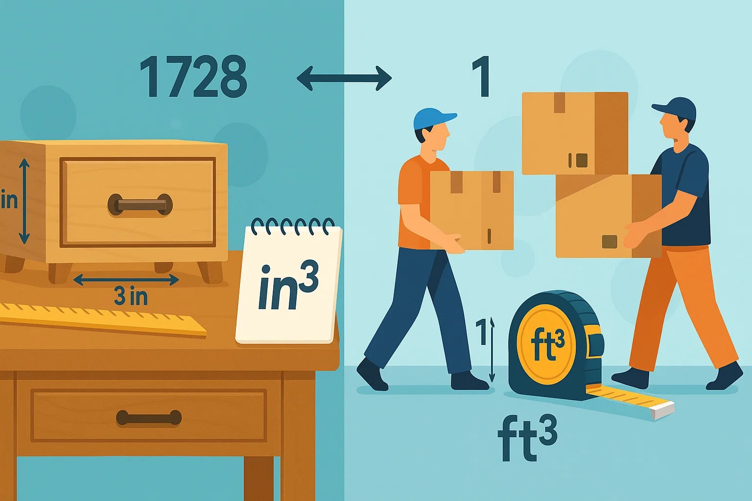 shows how the same space can be described at two very different scales. Cubic inches provide the fine detail that designers, engineers, and manufacturers rely on, while cubic feet give builders, movers, and households a practical way to think about larger volumes.