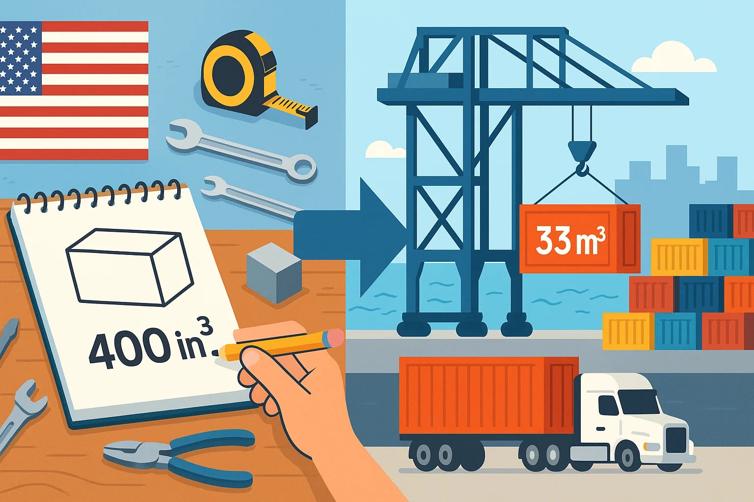 Picture a product designer in the US sketching a prototype and noting its volume as 400 in³. When the design is manufactured abroad, the factory requests the measurement in cubic meters. That same volume is 0.00655 m³.