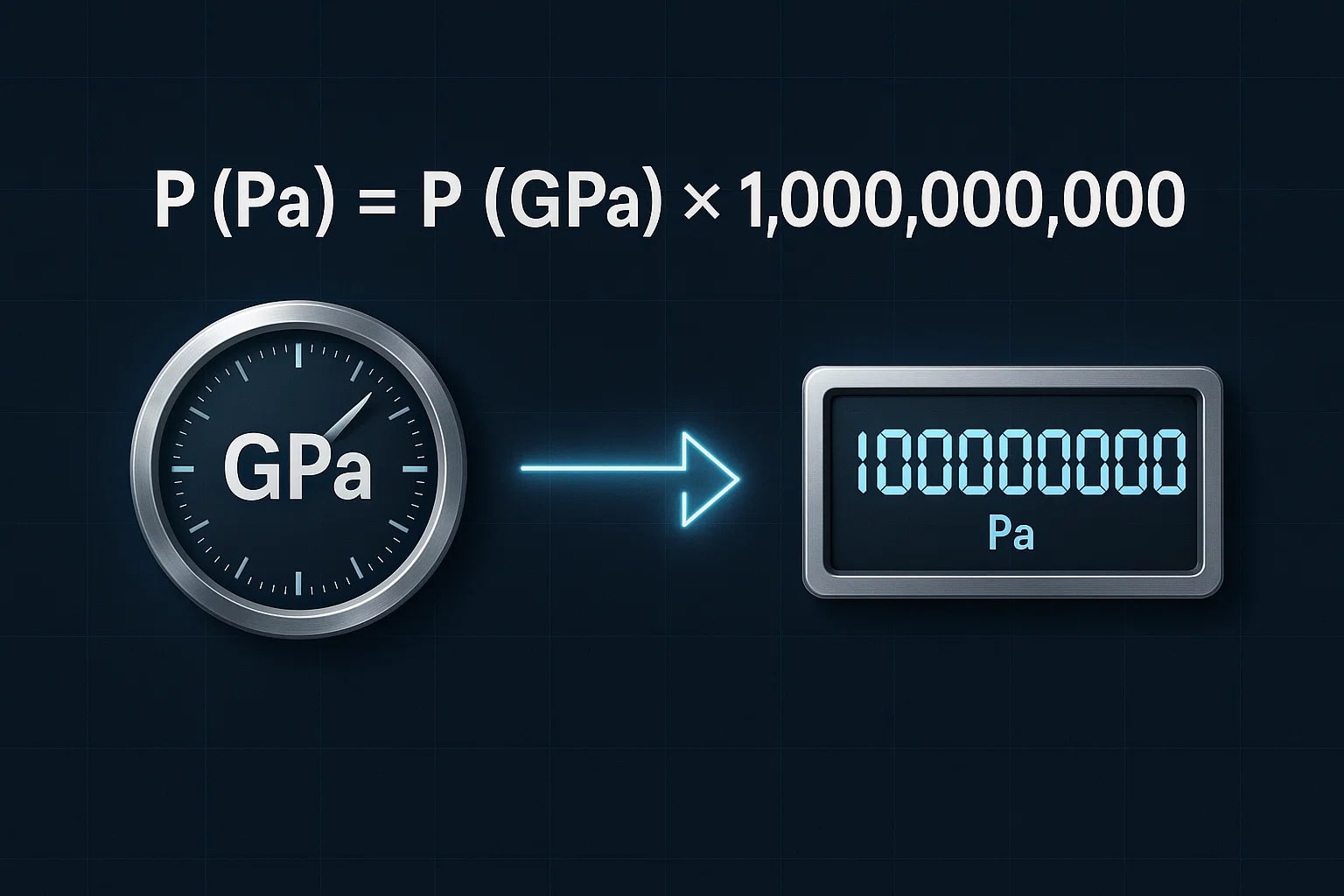 Convert gigapascal to pascal (GPa to Pa) instantly with our calculator. Learn formulas, examples, and real-world uses in engineering and materials science.
