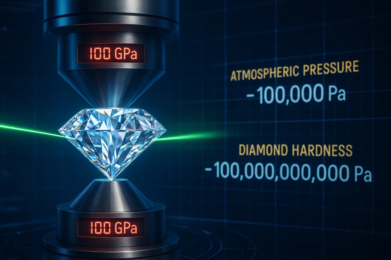 • Gigapascal fact: Diamonds can withstand indentation pressures of 60–100 GPa, making them the hardest natural material known.