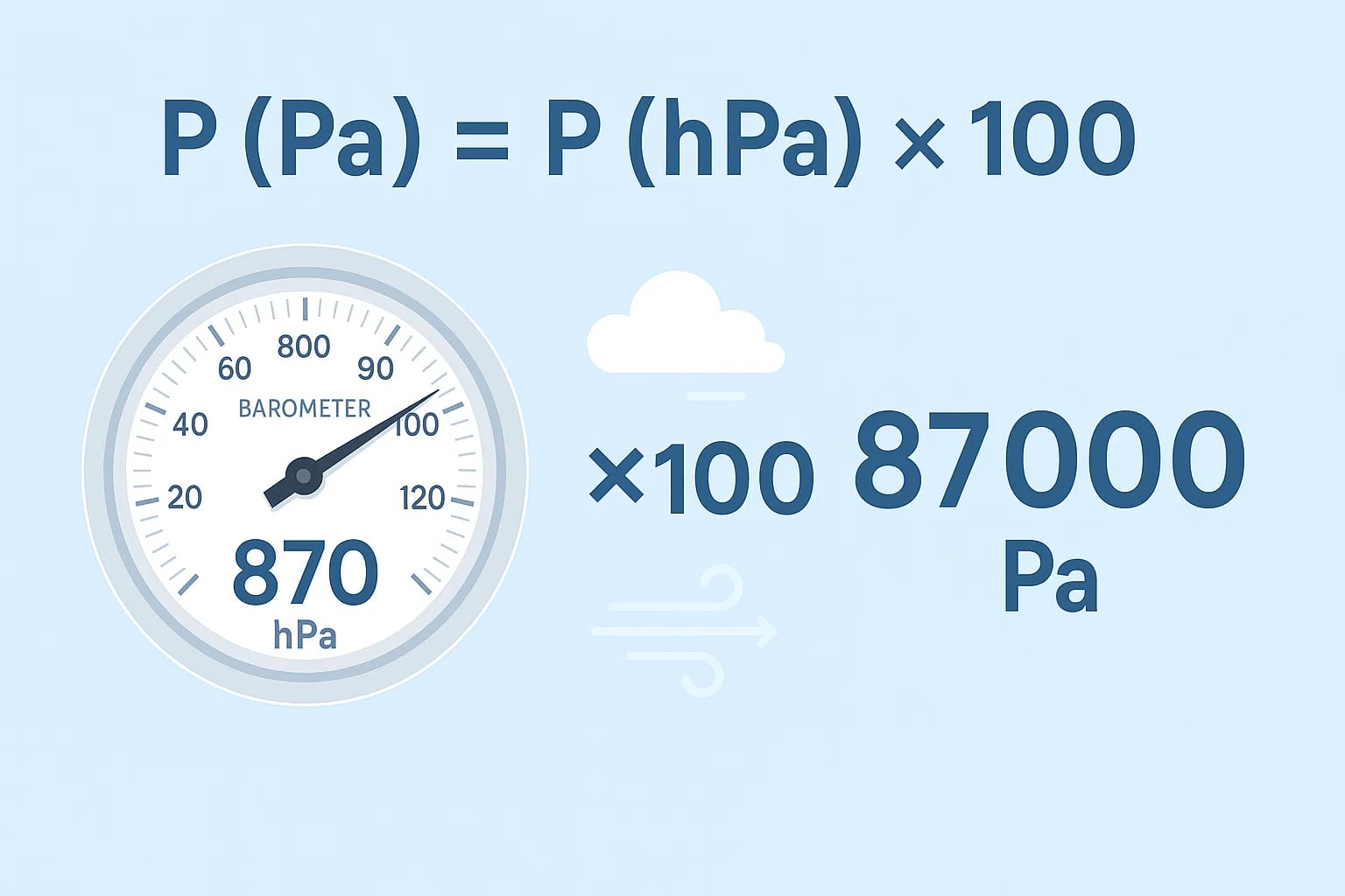 For example, when atmospheric pressure drops from 1013 hPa to below 1000 hPa, it often signals stormy conditions. In severe cyclones, pressure can fall dramatically, as low as 870 hPa. Converting this into pascals makes the scale even clearer:
