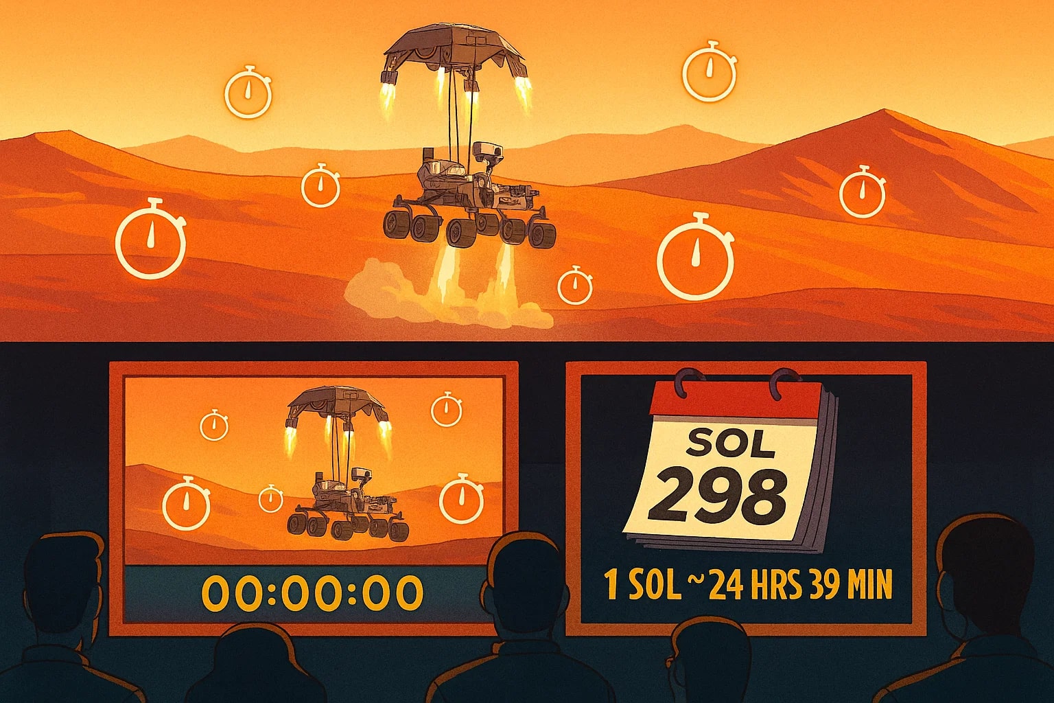 Mars has its own day, called a “sol,” which lasts about 24 hours and 39 minutes. Over time, that extra 39 minutes per sol adds up, forcing the mission team to constantly shift their work schedule. Millisecond-level events kept the rover safe and functional, while the day-long planning cycles dictated when experiments could happen.
