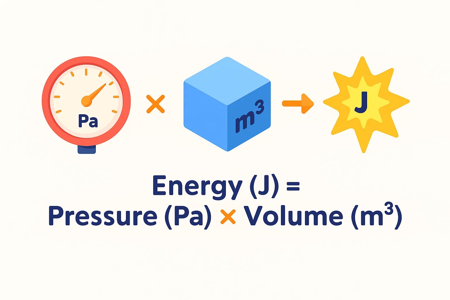 Energy (J) = Pressure (Pa) × Volume (m³)